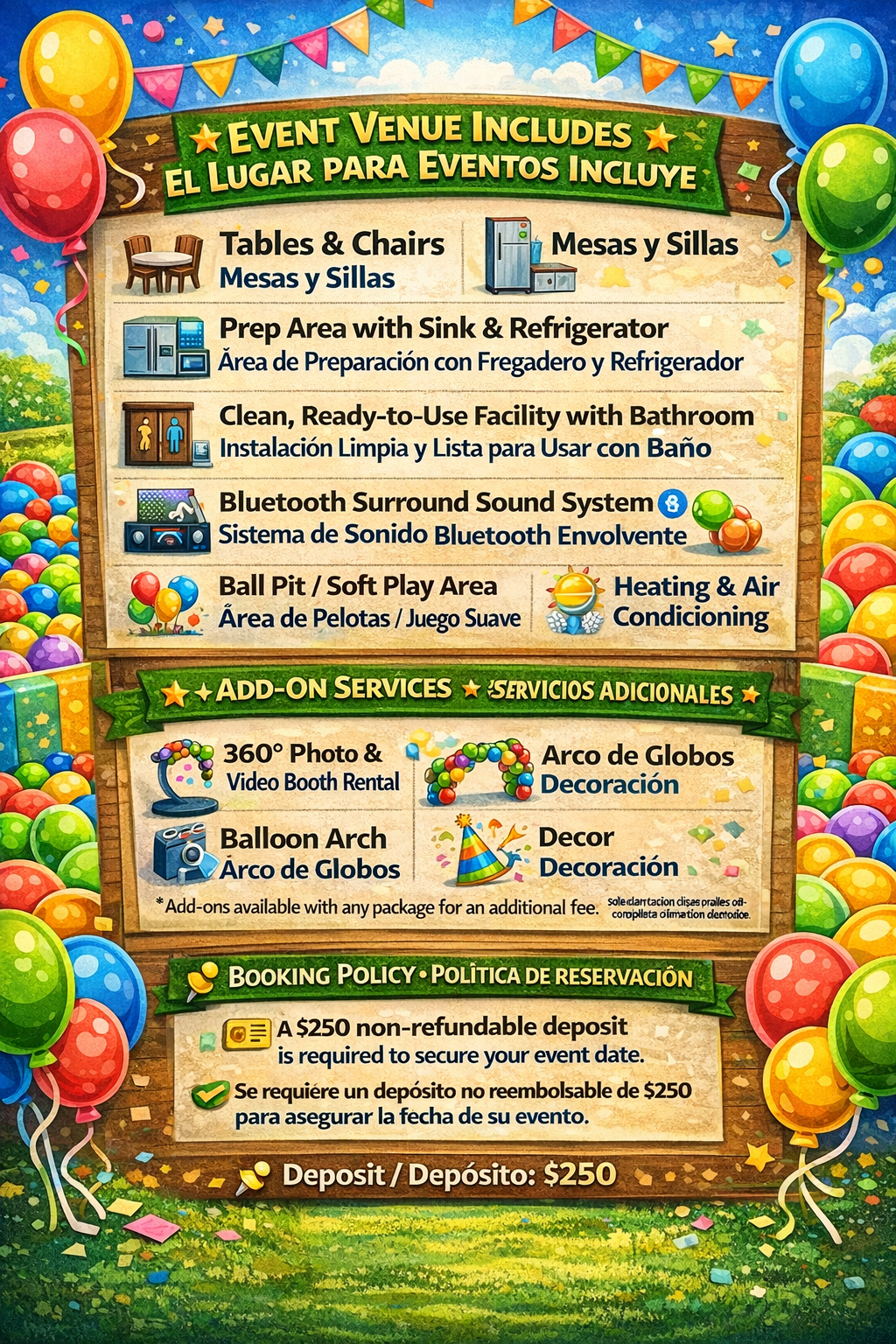 Package Includes / El Paquete Incluye🎈 Access to our Indoor Playground🎈 Acceso a nuestro Parque de Juegos Interior🎮 F...