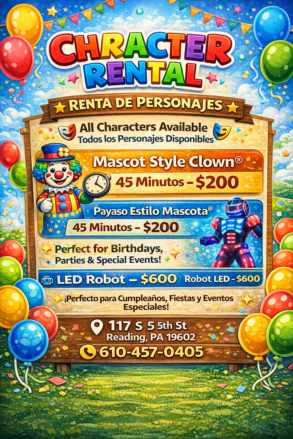 CHARACTER 45 MINUTES $200 MICKEY MOUSE,MINNIE MOUSE, SPIDERMAN,STITCH, PAW PATROL,MARIO BROTHER,CLOWN,ROBOT LED